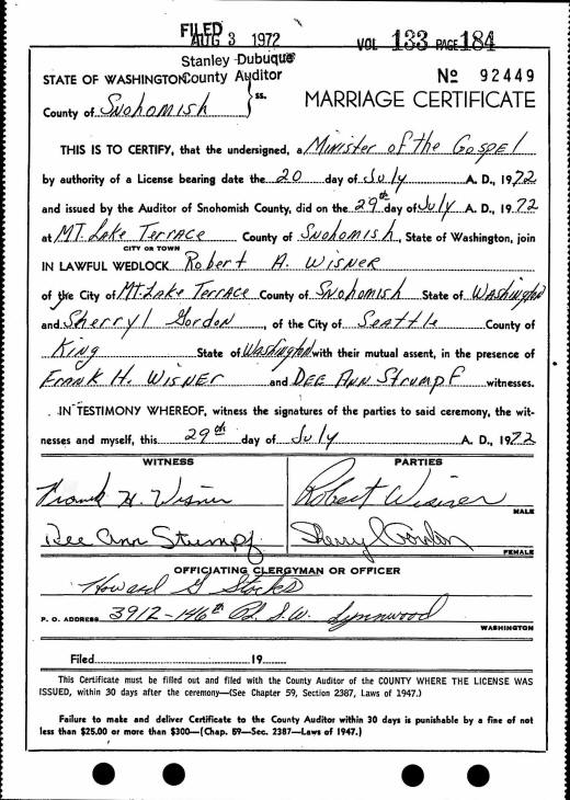 Marriage - Wisner and Gordon