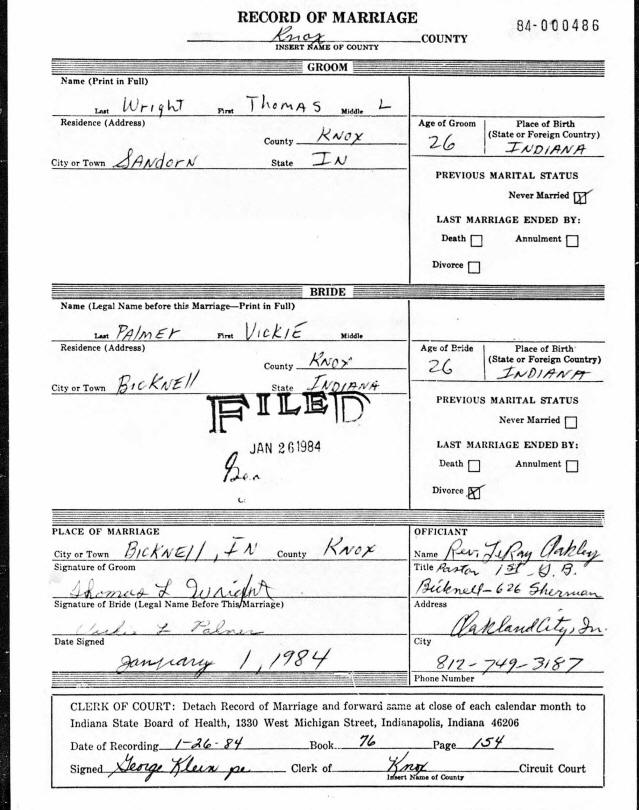 Marriage - Wright and Thomas