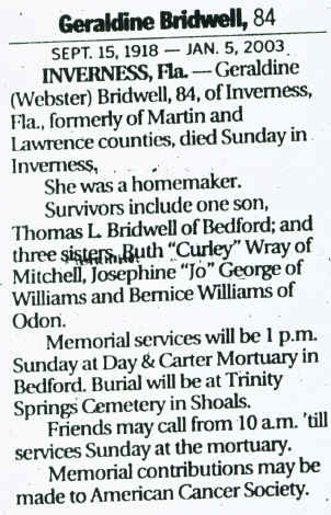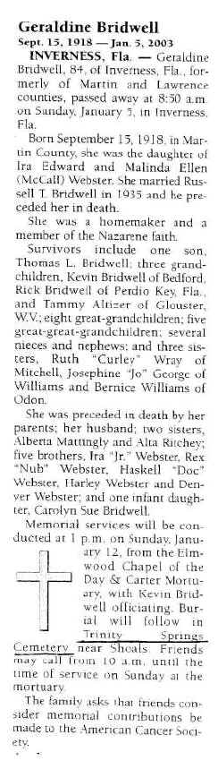 Obituary - Geraldine Bridwell