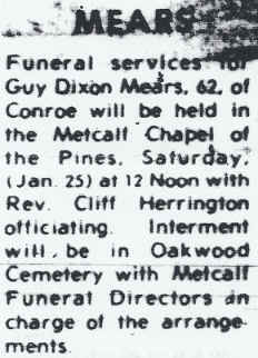 Funeral notice - Guy Mears