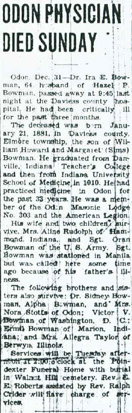 Obituary - Ira Edgar Bowman