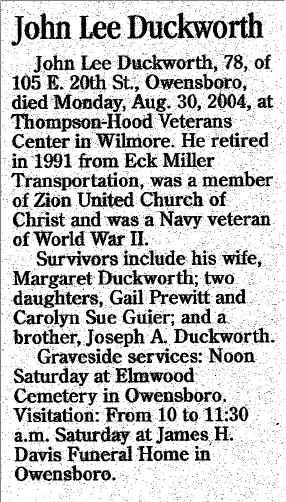 thanks to Gail (Duckworth) Prewitt for this obituary