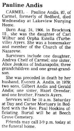 Obituary - Pauline Bessie (Ayers) Andis