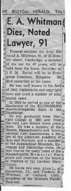 Obituary - Edmund Allen Whitman