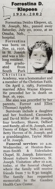 Obituary - Forrestina Deidre (Appleby) Klepees
