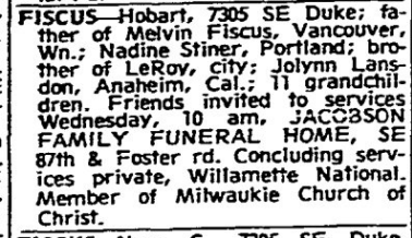 Obituary - Hobart McKinley Fiscus
