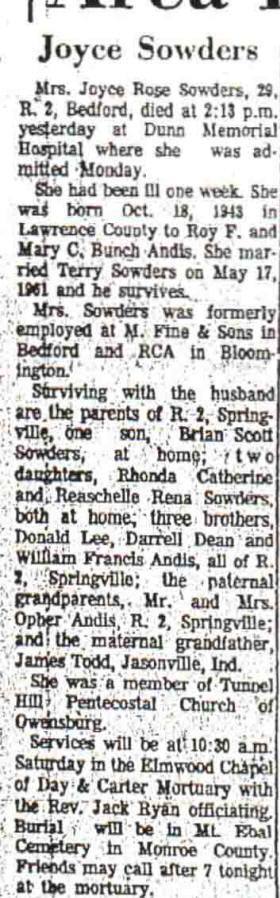 Death - Joyce Rose (Andis) Sowders