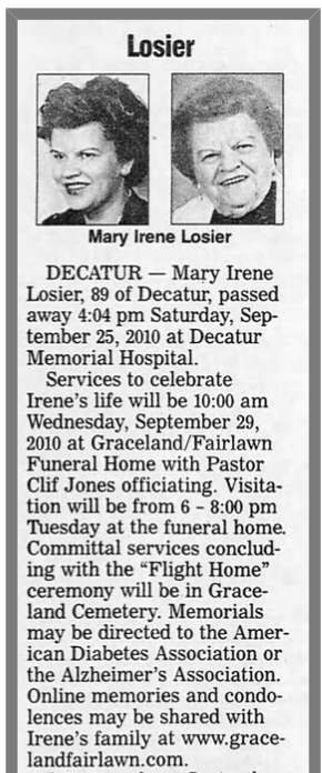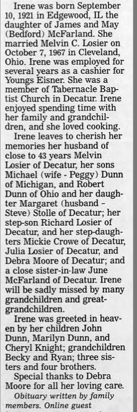 Obituary - Mary Irene (McFarland) Losier