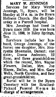 Obituary - Mary Winnie (Storie) Jennings