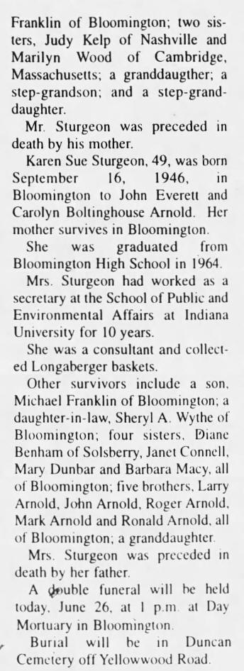 Obituary - Roger and Karen (Arnold) Sturgeon