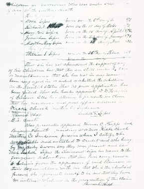 His by herself His by former marriage That she has not abandoned the support of any of his children but that they are still under her care or maintenance that she has not in any manner been engaged in or aided or abetted the rebellion in the United States that no prior application has been filed that she hereby appoints D D ___ of Salem Ills her attorney to prosecute her claim that her residence and post office address is Keck's Church Martin Co Indiana. signed by Isabelle Sipes (her mark) etc - legal closure |