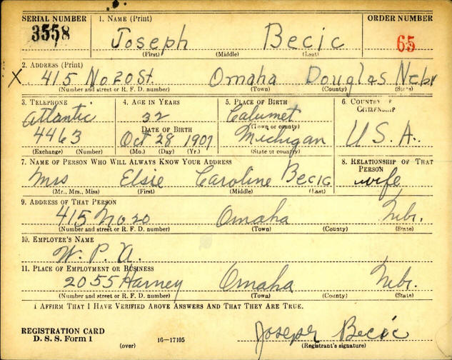 WWII Draft - Joseph Capon Becic